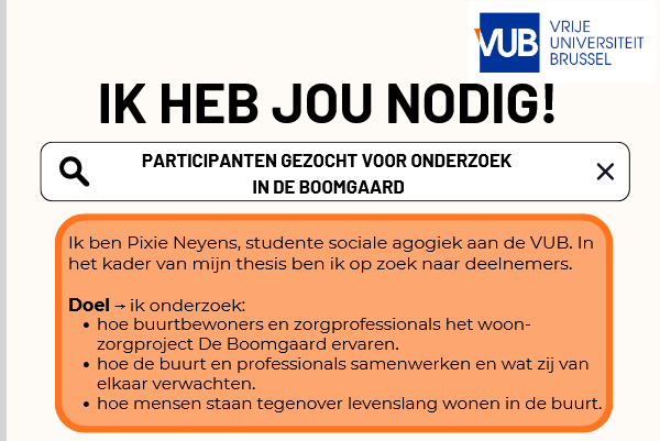 Deelnemers gezocht voor onderzoek naar hoe buurtbewoners de Boomgaard ervaren.